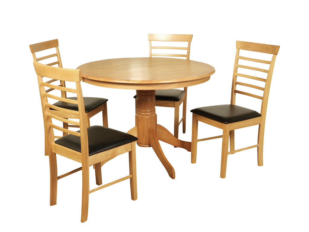 The Hanover Large Round Dining Set with 4 Chairs combines traditional design with modern features. Made from durable solid hardwood, it features comfortable PU leather seat pads and a refreshing light oak finish that adds warmth and sophistication to any dining area.