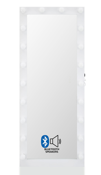 Hollywood Floor Mirror White with Bluetooth Speaker
