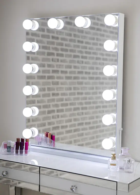 This portrait Hollywood Mirror will sit perfectly on most dressing tables and desks. At 800mm high and 650mm wide, the surface is a great size to help ensure that you look your best when getting ready in a morning. The 14 surrounding LED lightbulbs provide the perfect illumination, helping highlight your whole face to ensure even makeup coverage. Especially handy for those dark winter mornings or when getting ready for a night out. Hollywood decadence assured, you will feel like a movie star when getting ready.