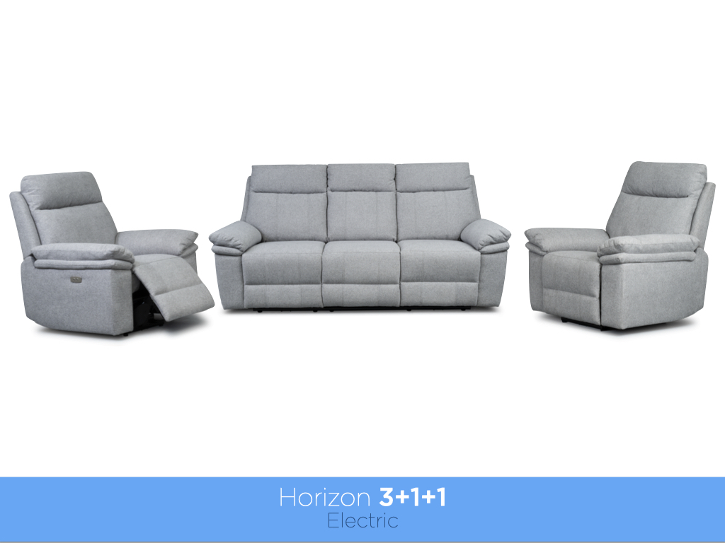Horizon 3+1+1 Electric Reclining Suite Light Grey Fabric