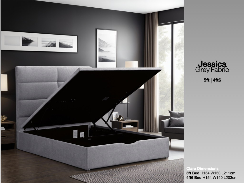 Elevate Your Bedroom with our Stylish Gas Lift Storage Beds. Discover the perfect blend of elegance and functionality with our Clara and Jessica gas lift storage beds. Available in chic Grey and timeless Beige, these beds are designed to complement any modern or classic bedroom decor while offering unbeatable storage solutions.