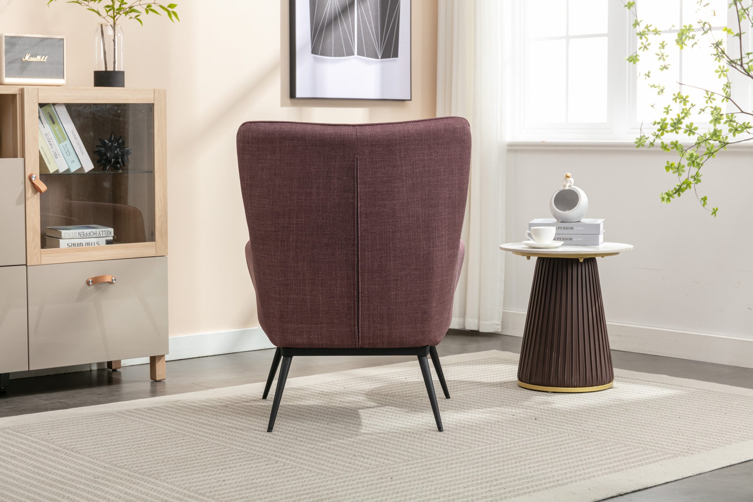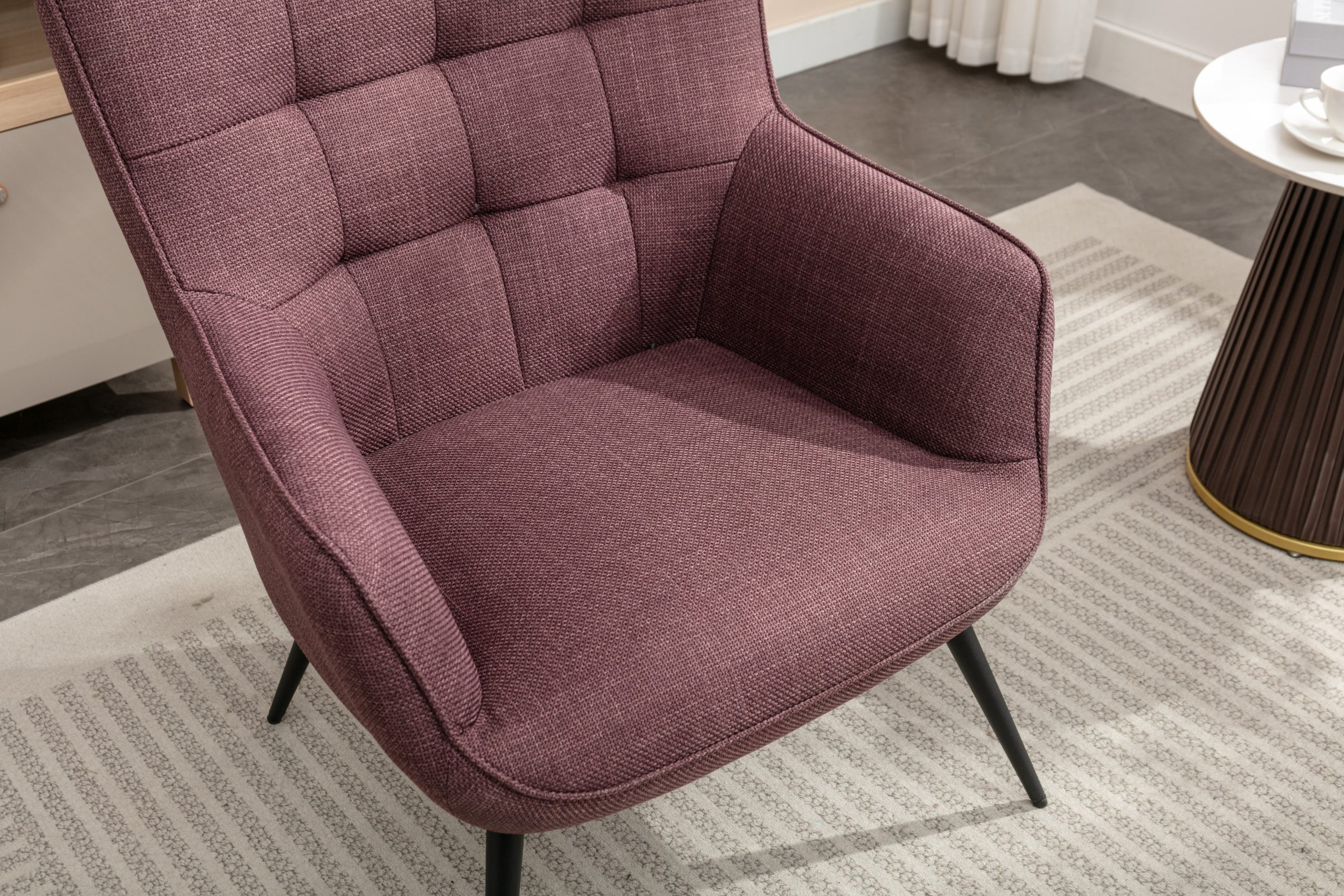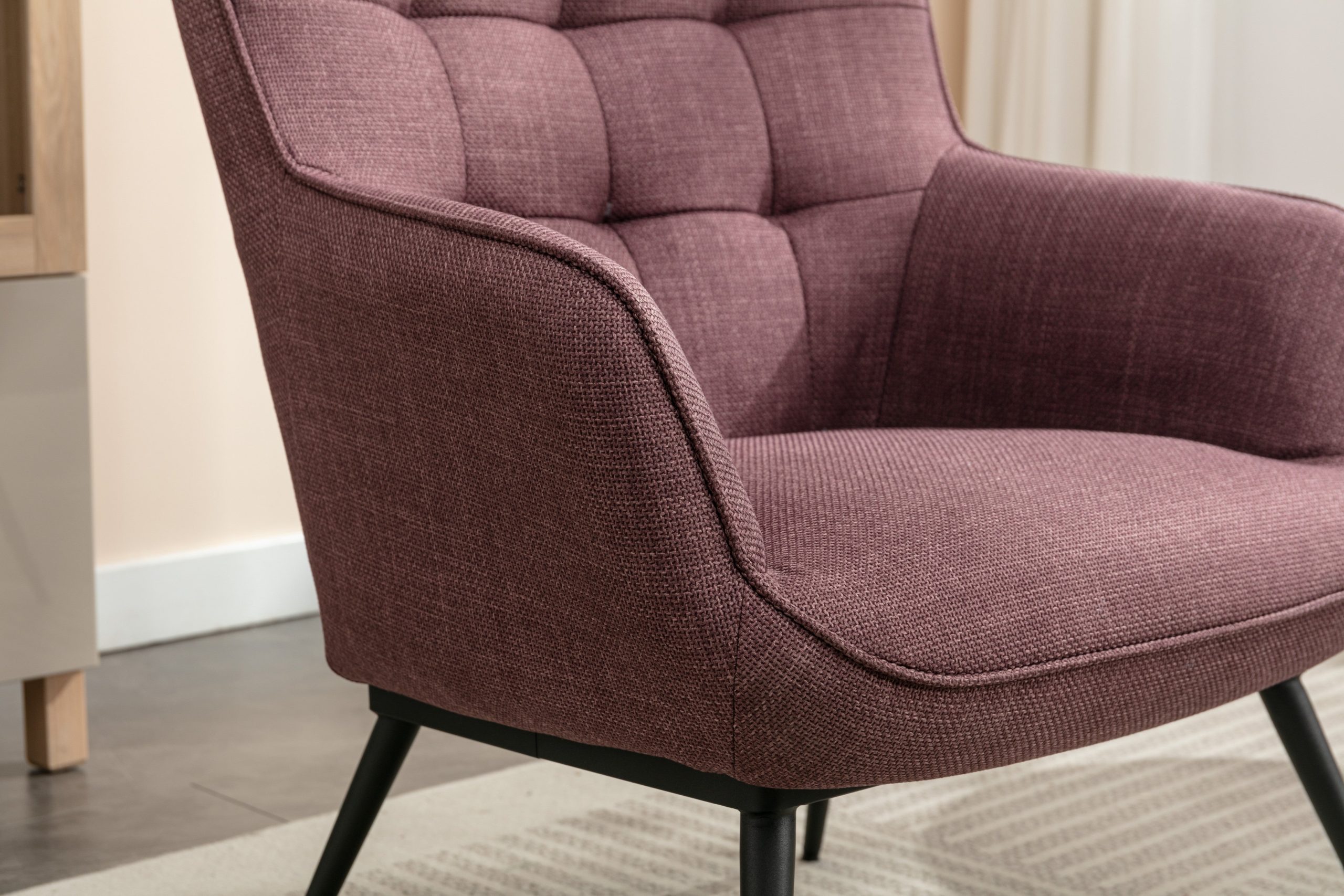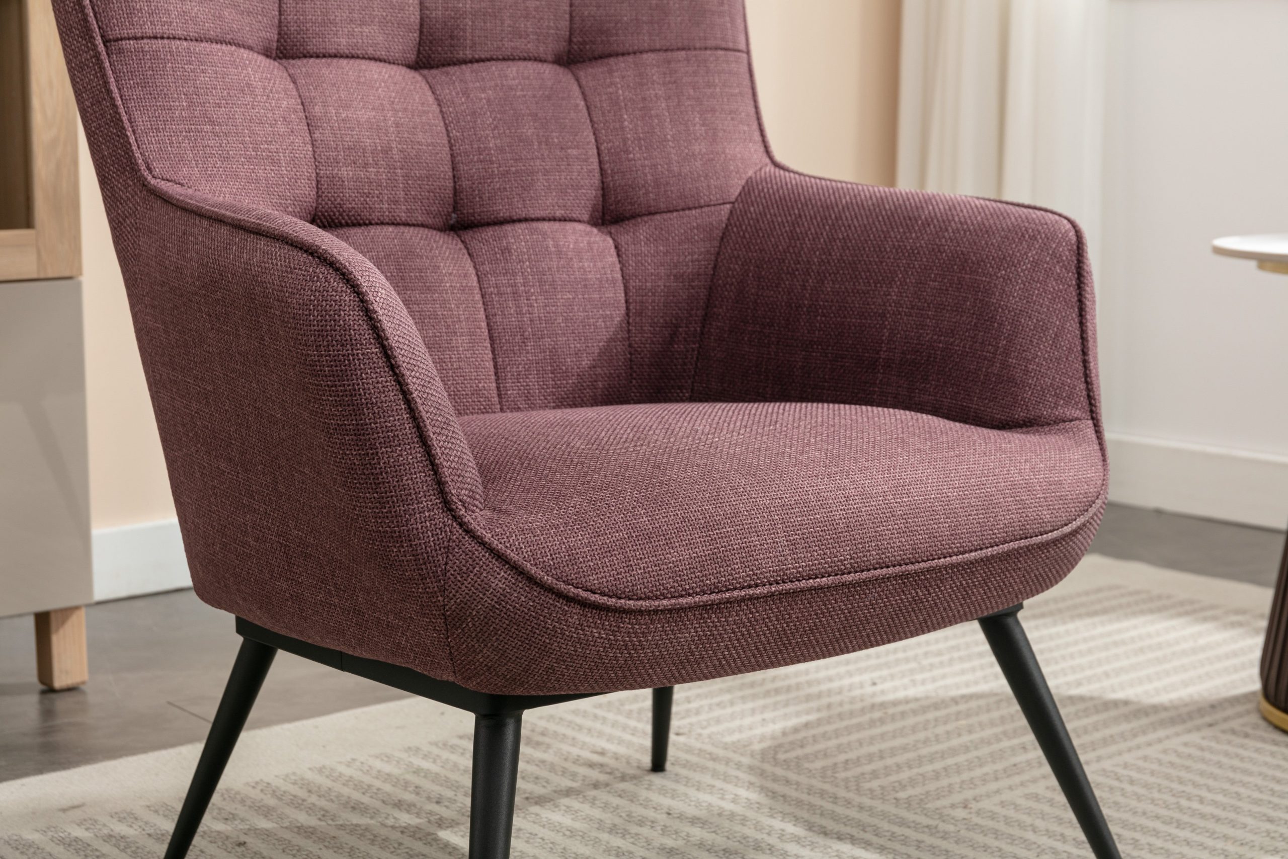 - Sleek Black Metal Legs: The contemporary black metal legs not only provide sturdy support but also add a modern aesthetic that contrasts beautifully with the plush fabric.