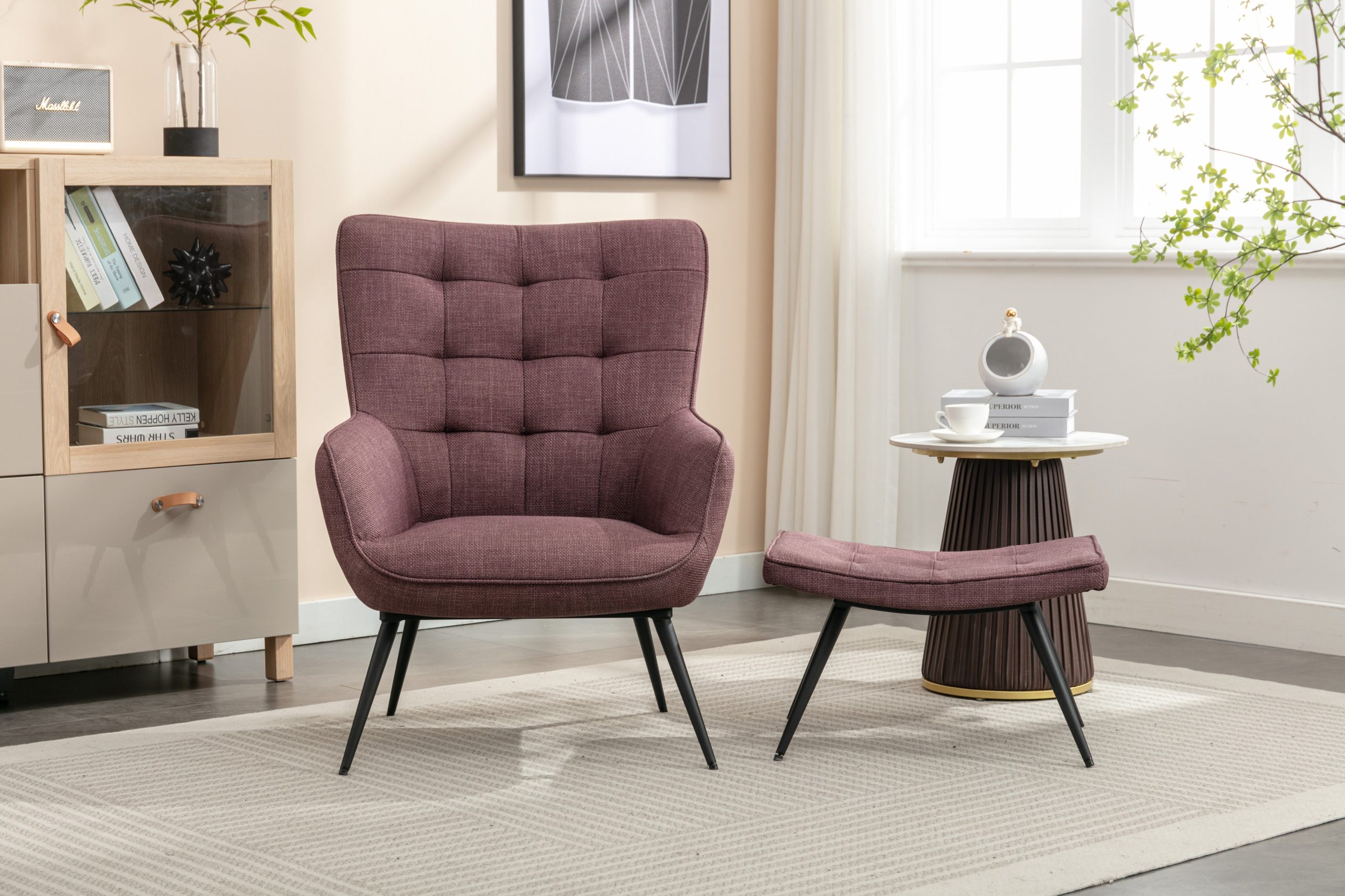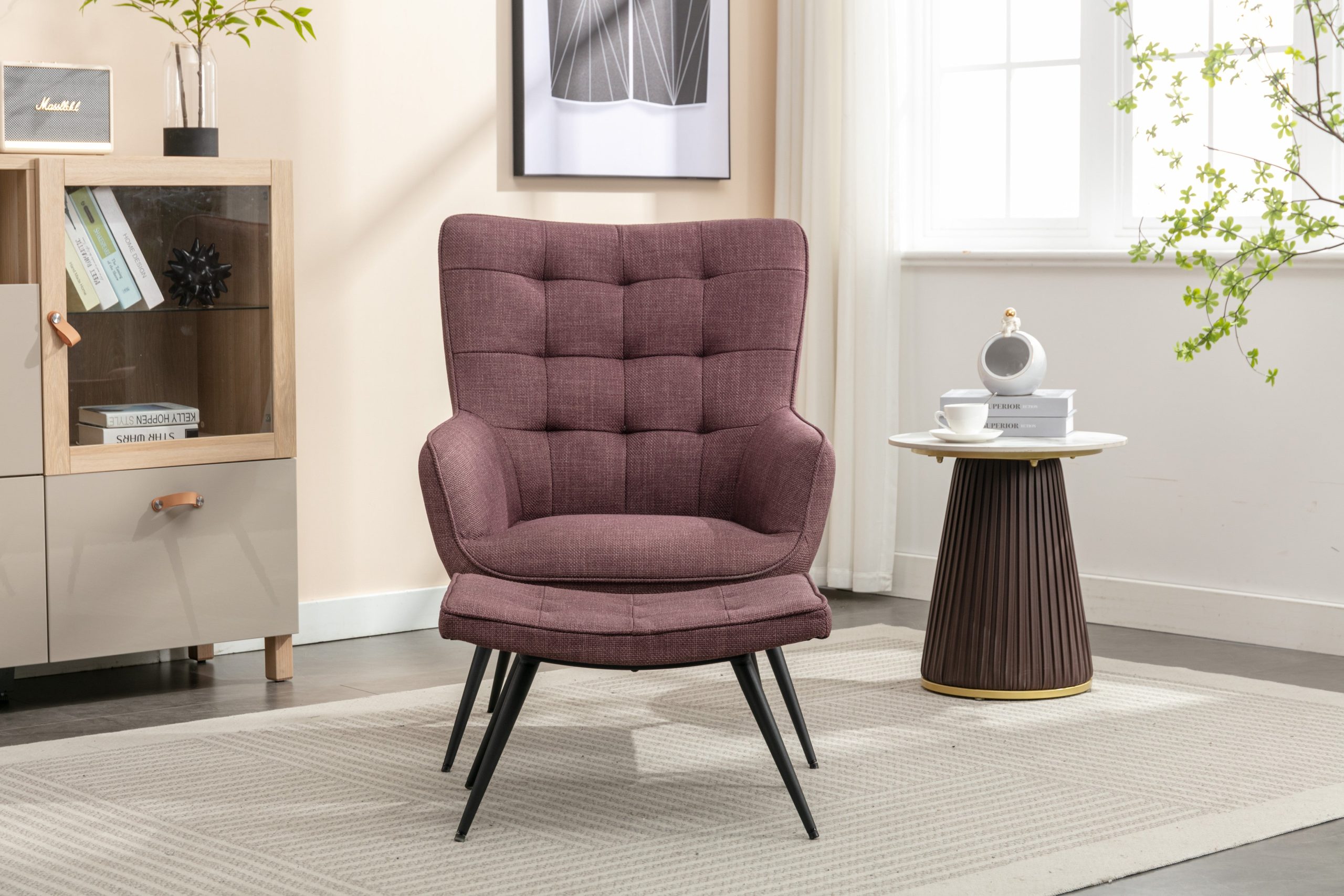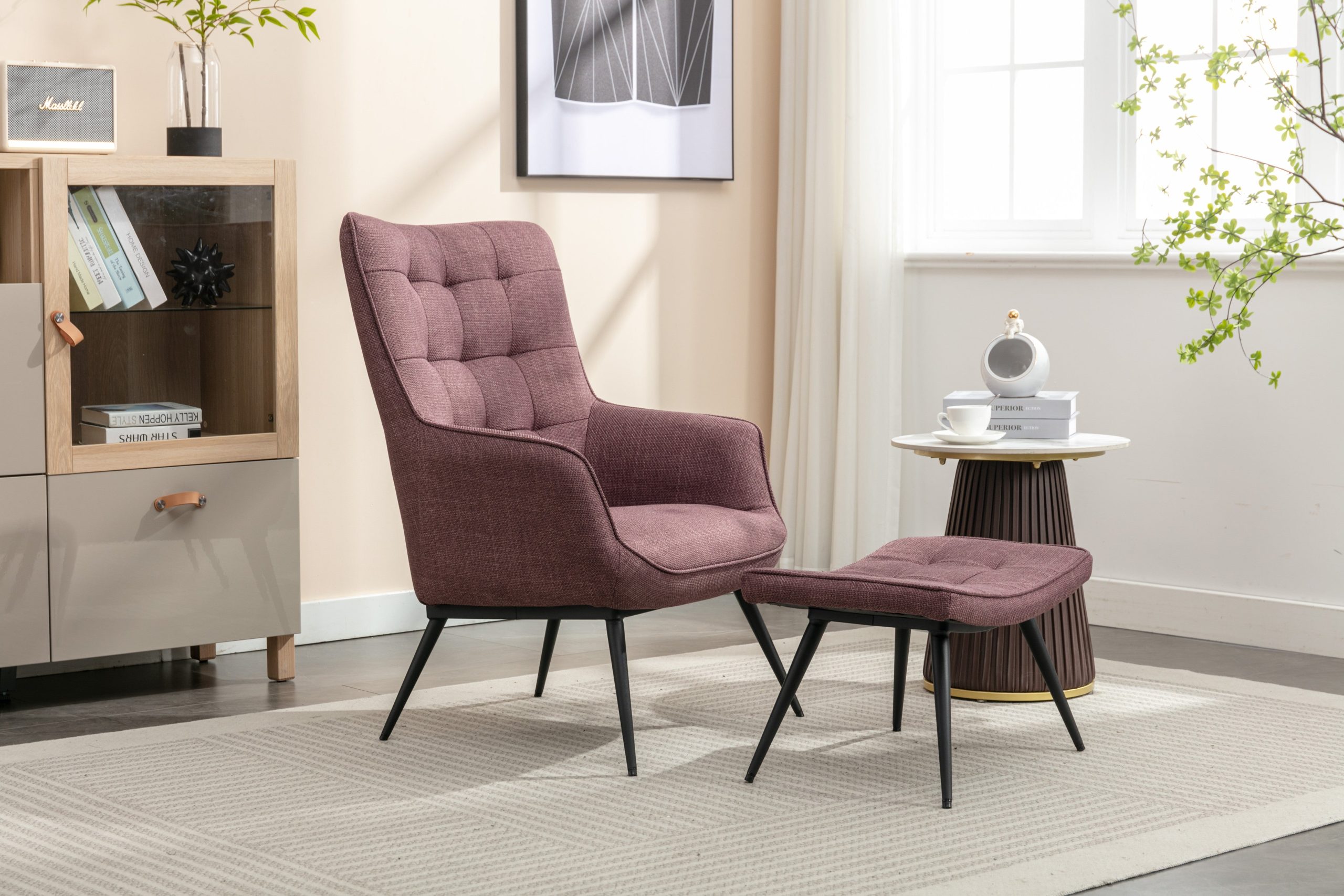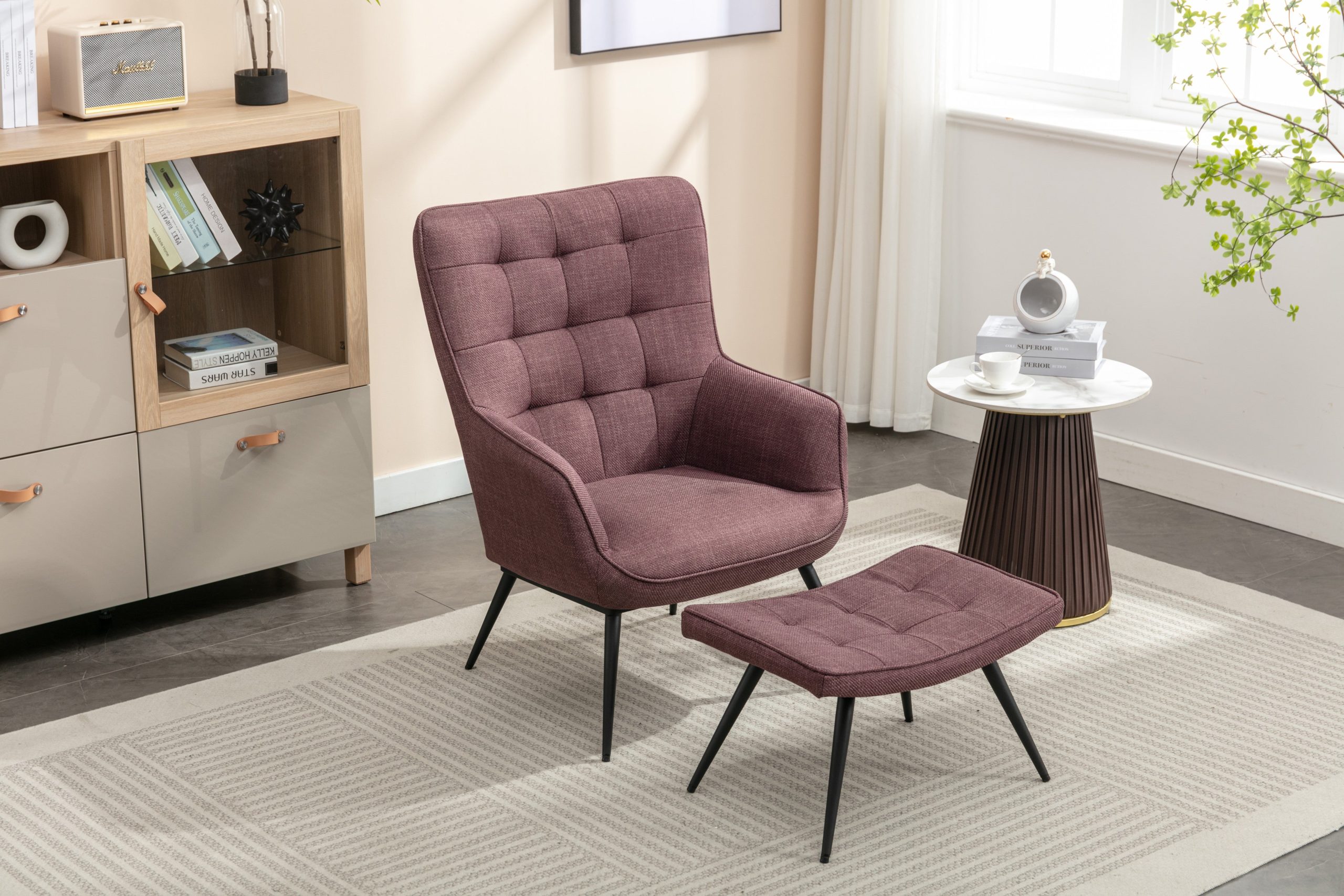 - Plush Comfort: Upholstered in soft, high-quality fabric, the chair and stool provide a supremely comfortable seating experience, perfect for relaxation.