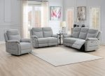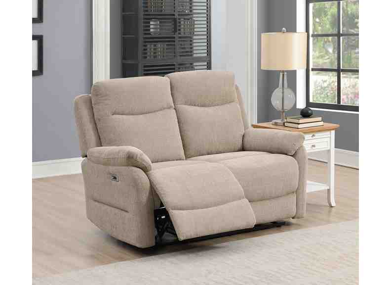 The Keegan Fabric Powered Two-Seat Sofa is the ideal choice for those seeking luxury and functionality in a compact design. With deep fabric padded upholstery, powered reclining action, and sleek chrome-finished control buttons, this sofa enhances your living space with both comfort and style. Available in grey or oatmeal colours, it suits a variety of home décors.