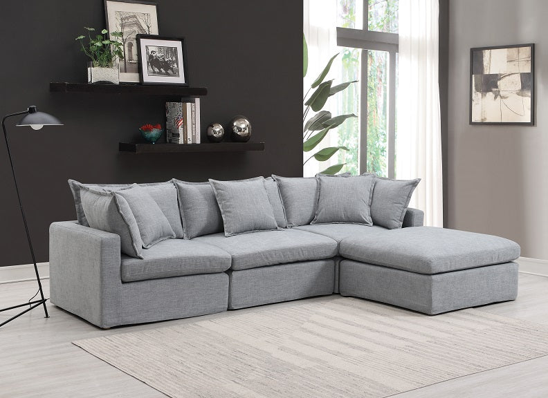 With pale grey colouring, soft seating and an included end ottoman chaise. The back cushions are removeable and give excellent supportĀ – this is a very versatile fabric corner sofa that only take pride of place in your dwelling.