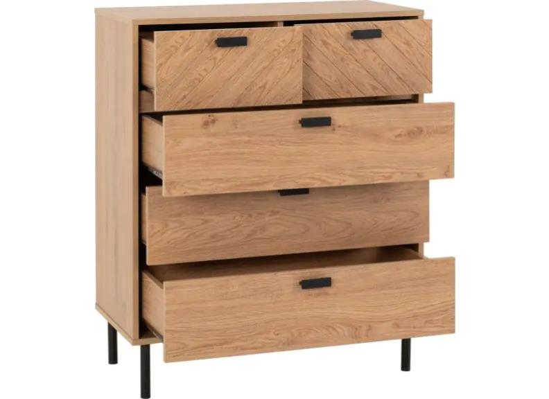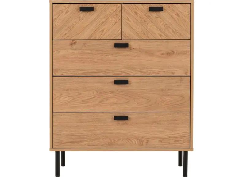 LEON OAK 2+3 DRAWER CHEST OF DRAWERSÂ with metal drawer runners & metal handles.