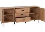 LEON TWO DOOR THREE DRAWER SIDEBOARD with metal hinges & handles.