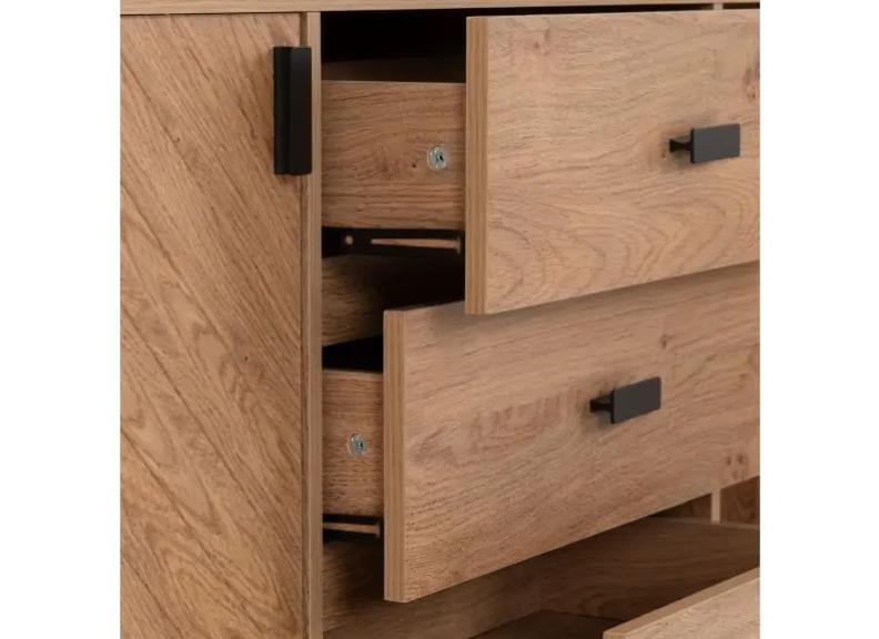 With metal legs, oak effect frames & chevron patterns etched in doors, with our new Leon Range style meets functionality to elevate any living space.