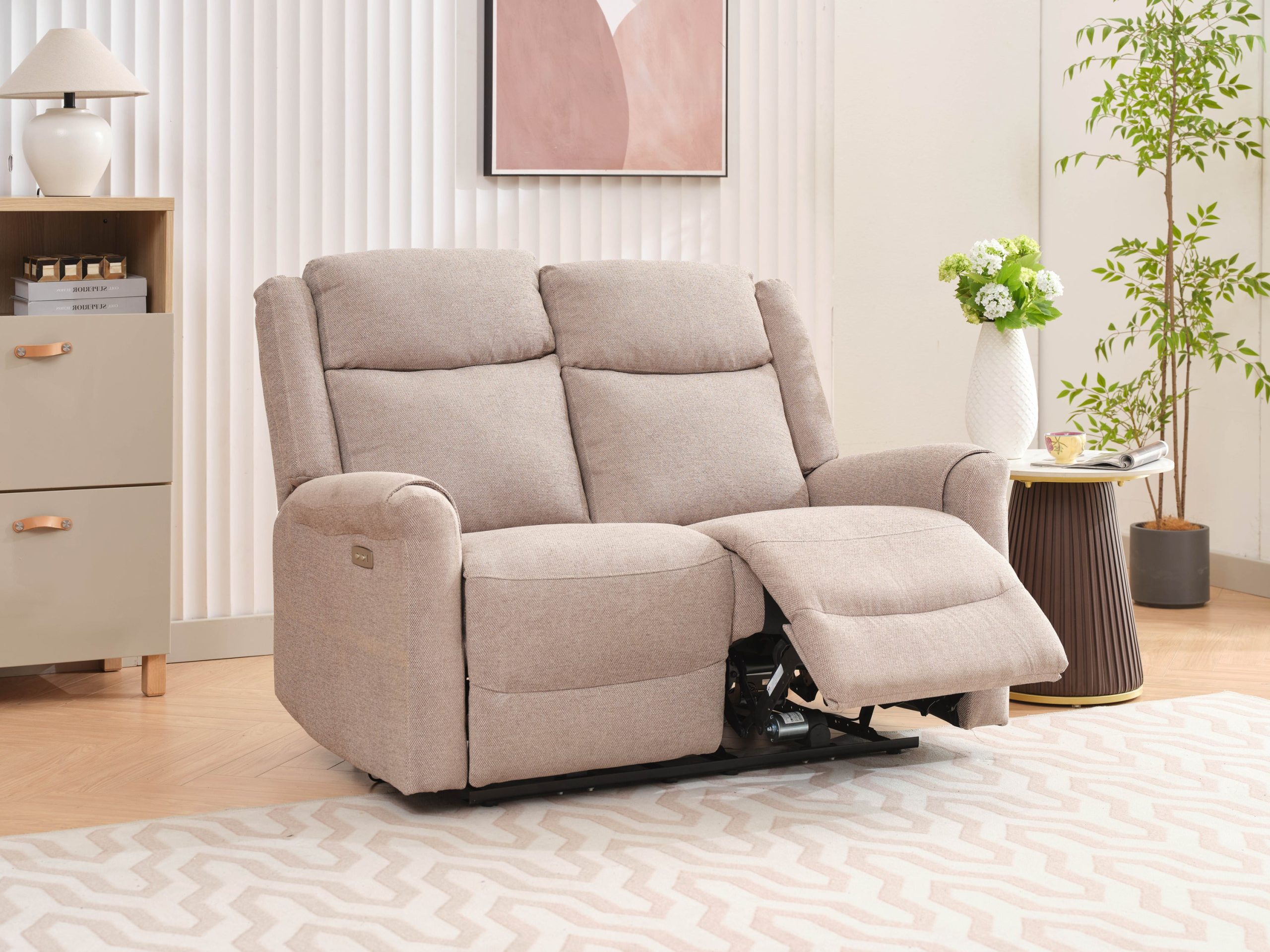 The Lexus 2 Seater Electric Reclining Fabric Sofa – Taupe is designed to offer both modern comfort and timeless elegance. Featuring an electric reclining mechanism, this 2-seater sofa allows you to adjust your seating position effortlessly at the touch of a button, providing personalized relaxation. Upholstered in a sophisticated taupe fabric, it complements a wide range of home décor styles and adds a warm, inviting touch to any living space. The pocket-sprung seats ensure superior support and plush comfort, while the integrated USB charging ports provide the convenience of keeping your devices powered while you relax.