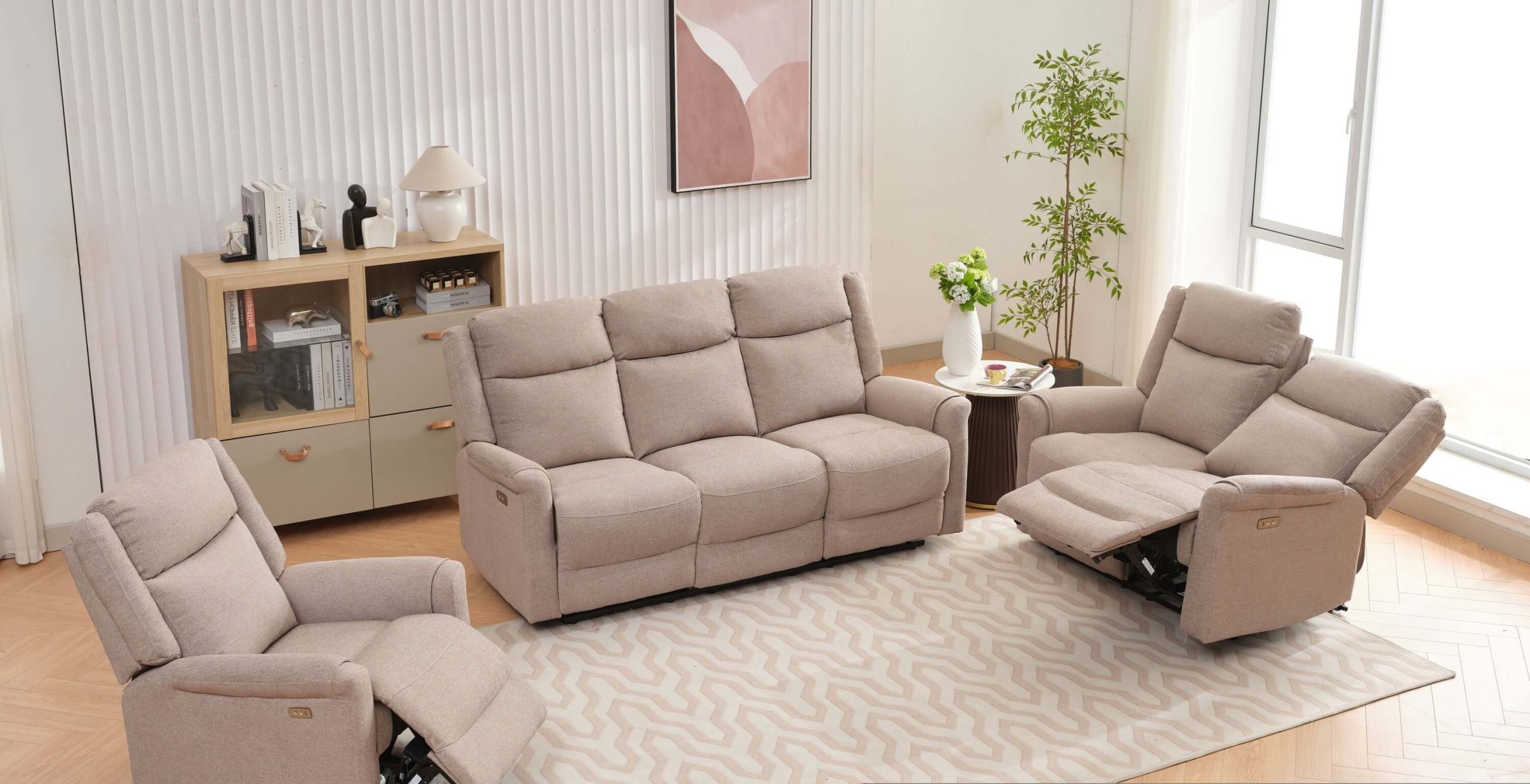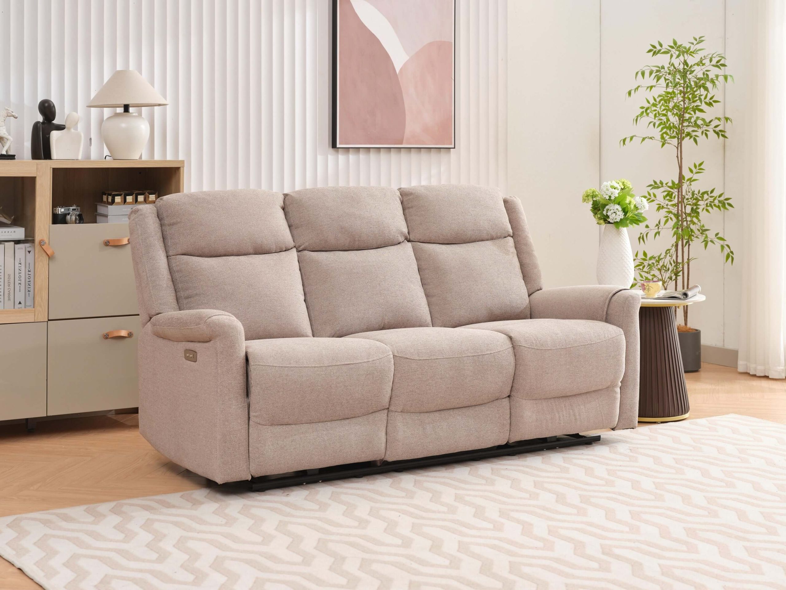 Lexus 3 Seater Electric Reclining Fabric Sofa – Taupe