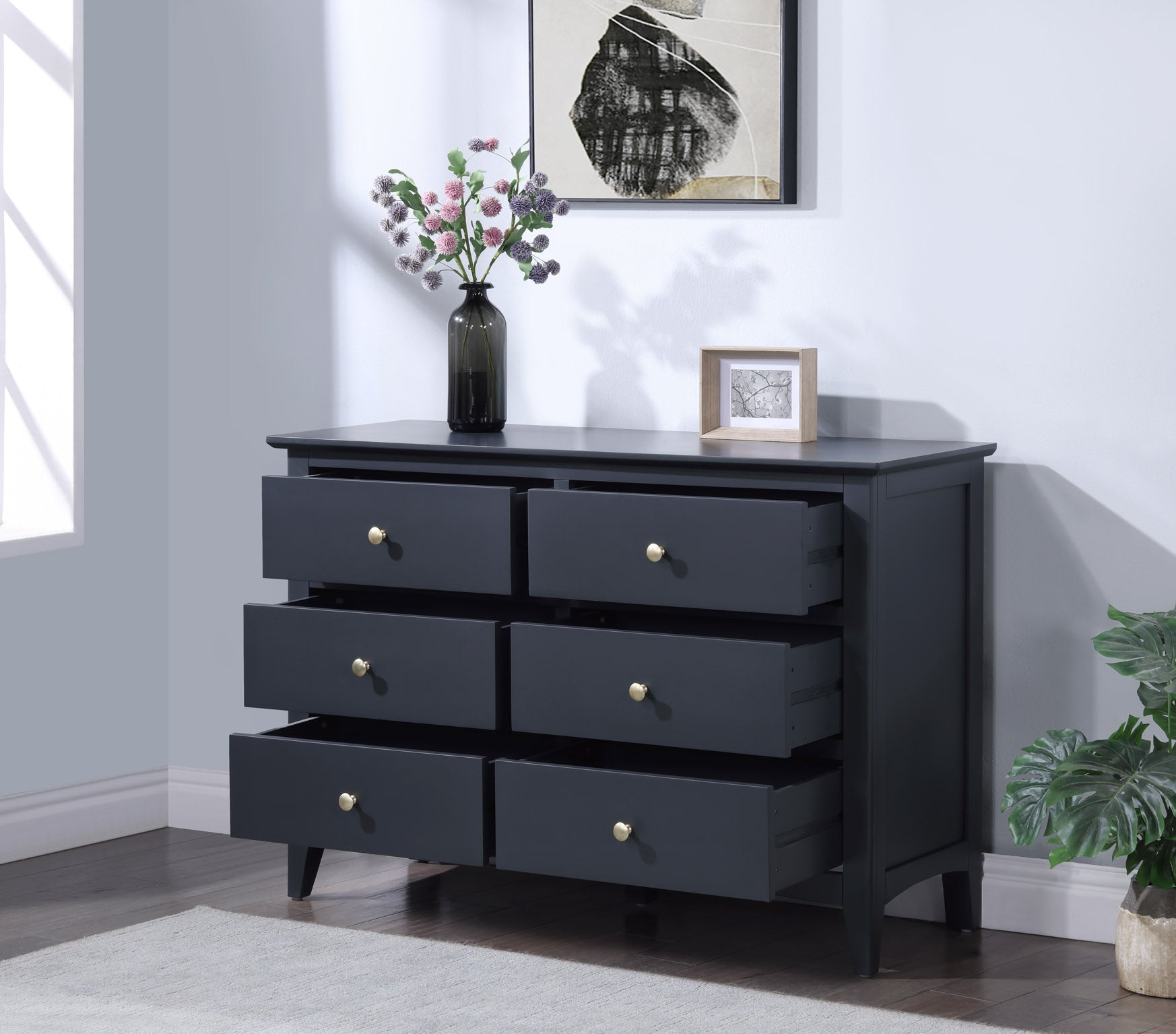 - Six Spacious Drawers: Provide ample storage for clothing, accessories, and essentials.