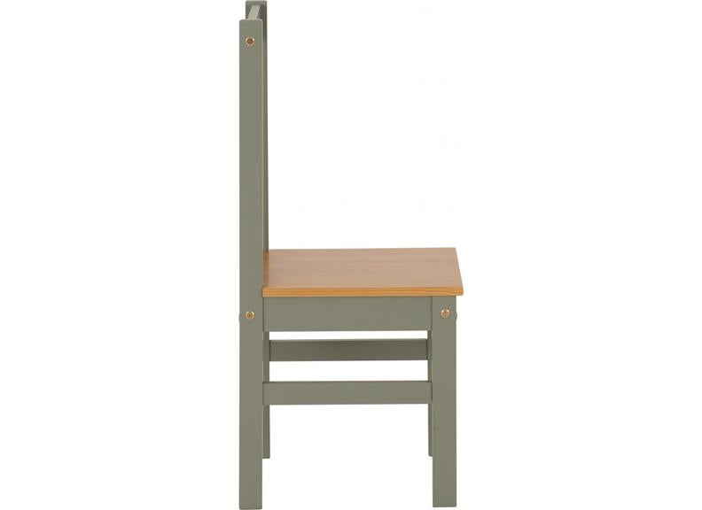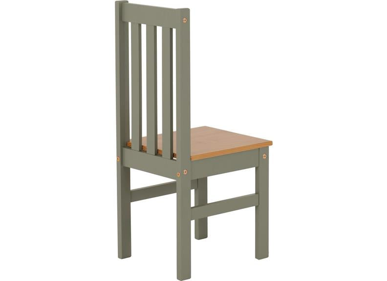LUDLOW GREEN/OAK 1+4 DINING SET-with green lacquered pine/wood board frames and light wood varnished tops/seats. This compact dining set represents excellent value for money.