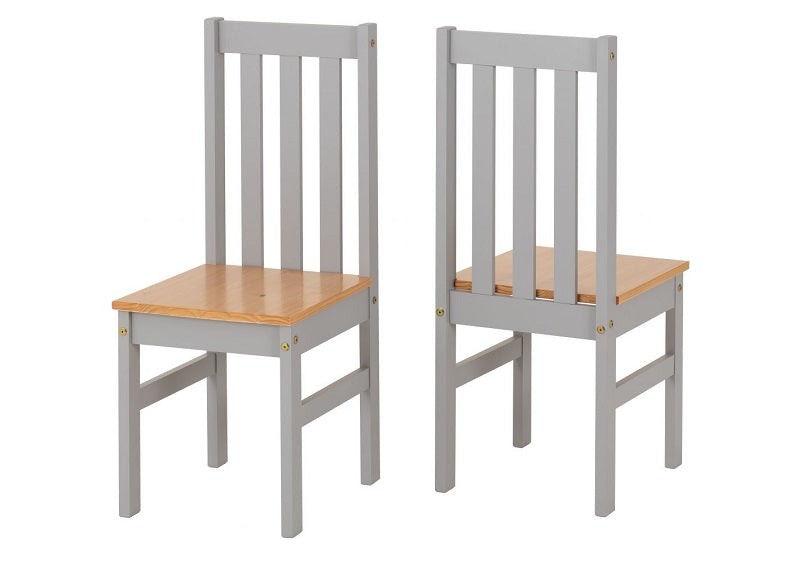 LUDLOW GREY 1+4 DINING SET-with grey lacquered pine/wood board frames and light wood varnished tops/seats. This compact dining set represents excellent value for money.
