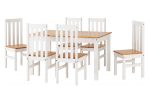 LUDLOW WHITE 1+6 DINING SET-with white lacquered pine/wood board frame and light wood varnished tops/seats. This dining set represents excellent value for money.