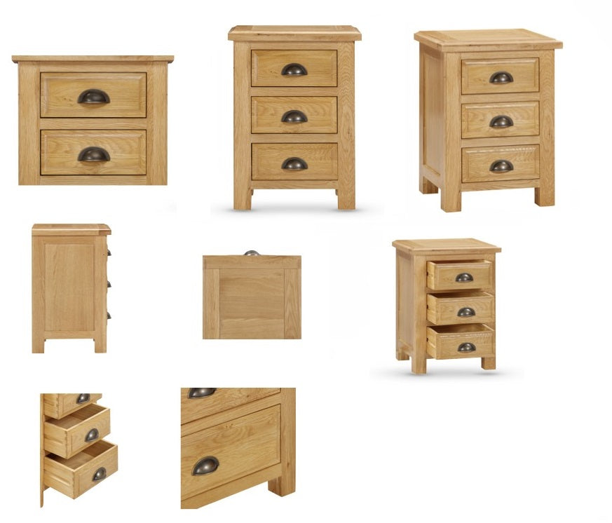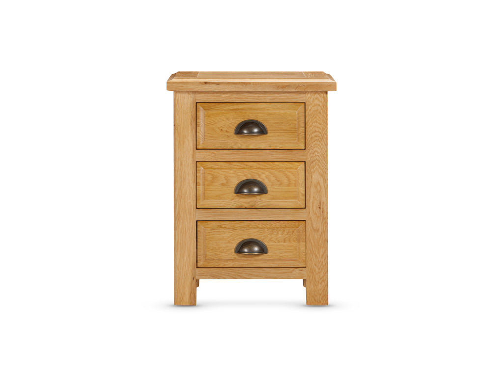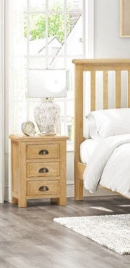 The Lugano Oak 3 Drawer Nightstands offer a perfect blend of classic charm and modern functionality for your bedroom. Crafted from solid oak and selected oak veneer, these nightstands feature a warm oak finish that enhances their natural beauty and elegance.