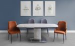 This Cologne dining table is made of solid hardwood, with a 61cm-91cm extendable design and an oak finish. This dining