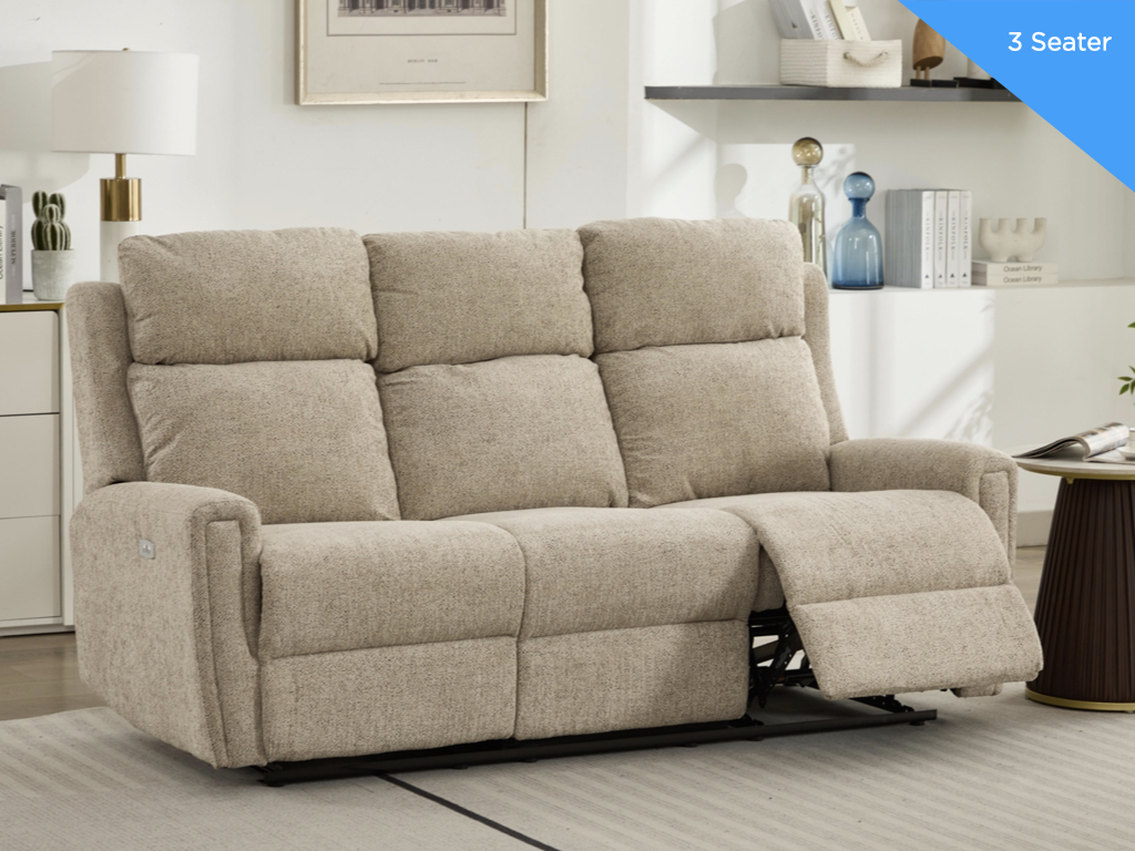 Experience the ultimate blend of style and comfort with our new Mayfair Fabric Suite. Available as both an electric recliner and fixed mode suite. Designed with a sleek, on-trend aesthetic, this suite comes in two versatile colours: Ash and Beige, perfect for complementing any modern living space.