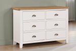 Mellor 6 Drawer Dressing Chest in Cashmere offers a space-saving storage solution with classic country charm. Featuring an oak-veneered grey wash top and painted in a soft cashmere finish, it includes six drawers set on traditional wooden runners for smooth operation. Finished with silver metal cup handles, this elegant piece brings refined style and practical functionality to any bedroom.