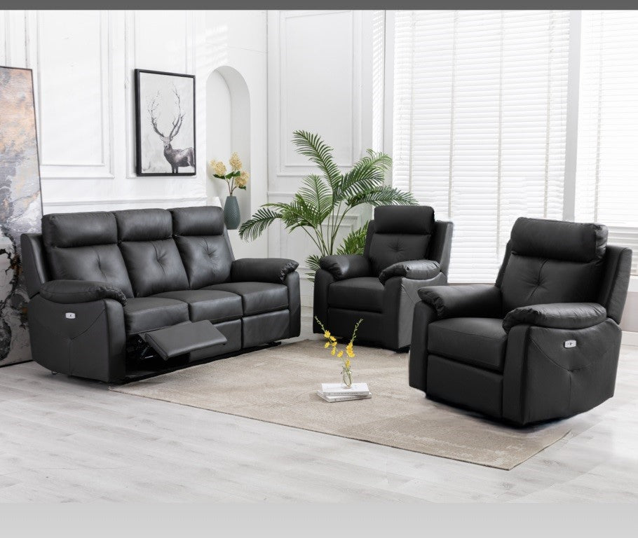Enhance your living room with the Milano Leather 3+1+1 Electric Recliner Sofa Suite in Anthracite. Features premium leather throughout, electric recline, plush cushions, and USB charging ports. Perfect for modern homes.Â