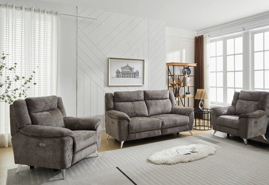 The Monroe 3+1+1 Electric Recliner Sofa Suite offers a blend of luxury and modern convenience. This elegant suite includes a spacious 3-seater sofa and two individual recliner armchairs, all upholstered in fabric, enhancing the sophistication of any living space.