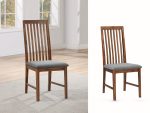 - Six Slat Back Padded Chairs: Include grey fabric seats for added comfort and style.