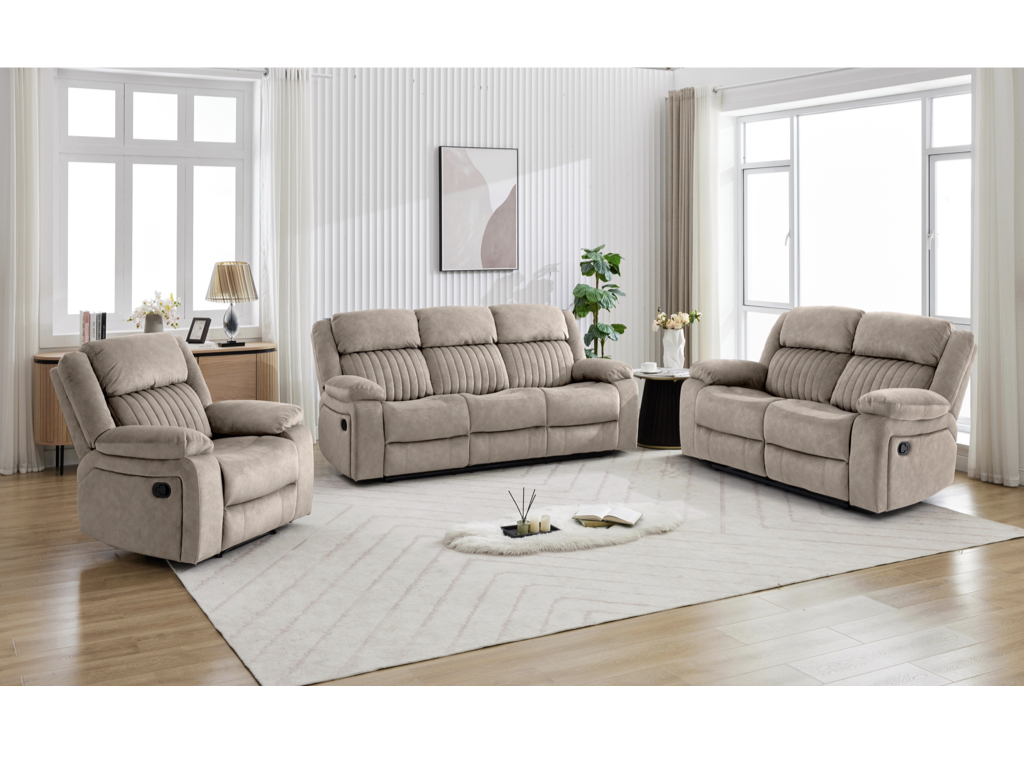 Indulge in ultimate relaxation with this elegant fabric manual recliner suite. Designed for comfort, its plush cushioning and smooth reclining mechanism provide a cozy spot for unwinding. Upholstered in soft, durable fabric, this suite is perfect for any living room, offering both comfort and timeless style.Morgan is available in three on trend colours, Iron, Slate Grey and Taupe and with Pocket sprung seats for added comfort. Available as a 3 seater, 2 seater, 2 seater with console housing 2 cup holders and a wireless charger, armchair and a corner group. Morgan ticks all the boxes..