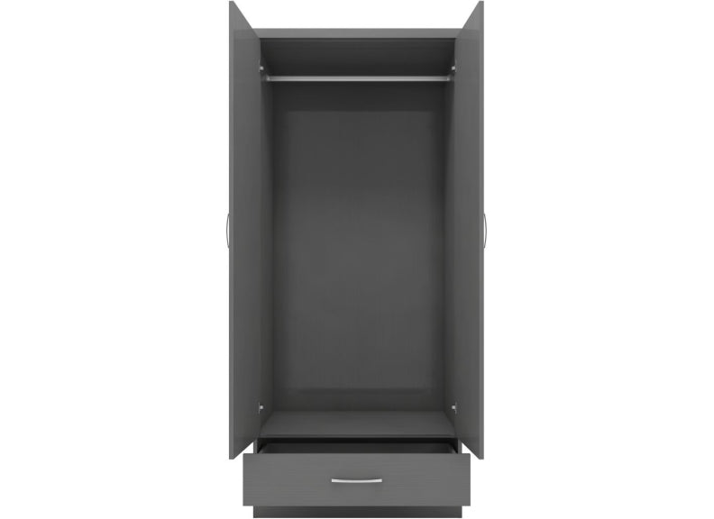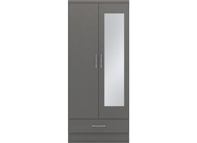 Nevada Full Grey Two Door One Drawer Mirrored Wardrobe is a stylish grey bedroom piece made from wood veneers with metal handles & drawer runners at a value for money price.