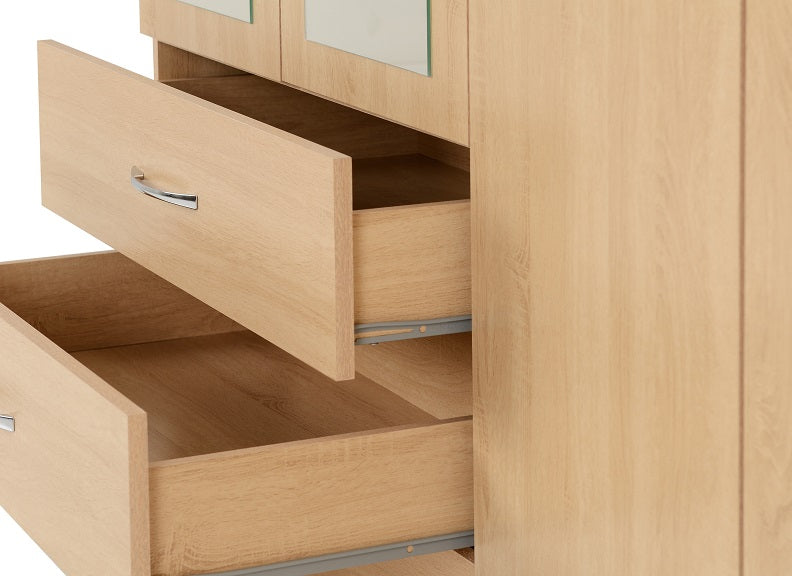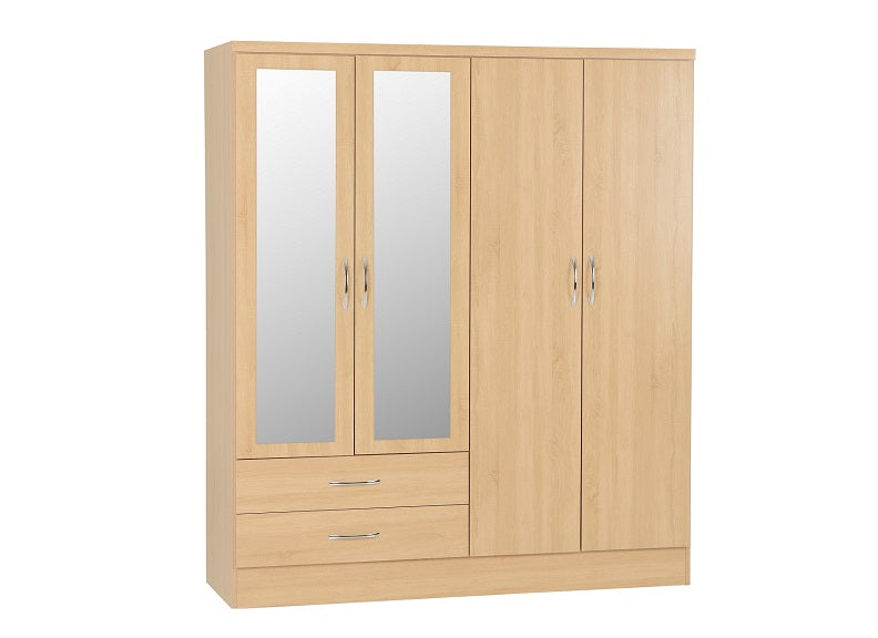 Nevada Oak 4 Door 2 Drawer Mirrored Wardrobe