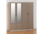 Nevada Oyster 4 Door 2 Drawer Mirrored Wardrobe