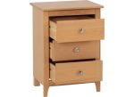 LEON OAK THREE DRAWER BEDSIDE with metal drawer runners & metal handles.