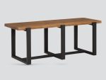 Elevate your dining space with our Pembroke Pine 120cm Bench. Made of solid pine and pine veneer, it boasts a warm and charming rustic pine finish that exudes both practicality and elegance.The sturdy black metal legs provide a contemporary contrast, ensuring stability and style.