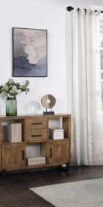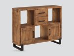 Presenting the Pembroke Pine Low Display Unit – a harmonious fusion of rustic sophistication and contemporary functionality. Meticulously handcrafted from solid pine and pine veneer, this exquisite piece boasts a charmingly warm rustic pine finish that imbues any space with character. Its sleek black metal legs offer both stability and a touch of modern flair.