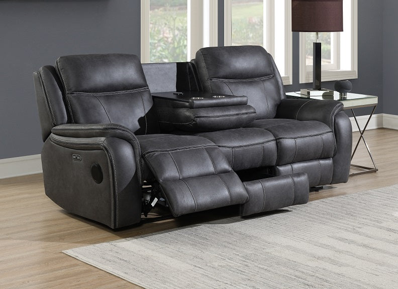 The Phoenix Faux Leather Sofa Collection is the epitome of modern comfort and luxury, offering a premium lounging experience. Featuring dark grey slate faux suede upholstery, this collection is equipped with powered reclining action, built-in speakers for a cinema-style experience, and USB-C ports for convenient device charging. The range includes a powered armchair, a two-seat sofa with console, and a three-seat recliner with tray, each designed to provide comfort and enhance your home entertainment experience.