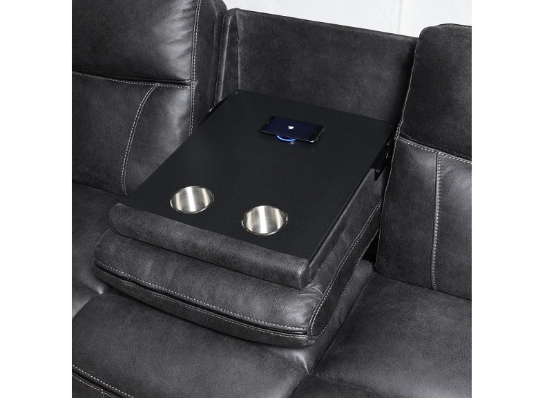 - Three-seat sofa with drop-down tray, slide-out drawer, wireless charging point, and drinks holders for added convenience and functionality.