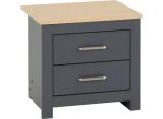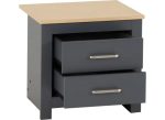 PORTLAND TWO DRAWER BEDSIDE – All Portland items are crafted chiefly from dark grey lacquered wood board with oak effect tops & MDF wood with metal handles, drawer runners & hinges.