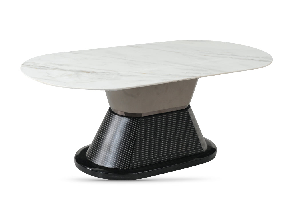 Experience the luxury and sophistication of the Portofino Sintered Stone Coffee Table, a fusion of modern aesthetics and exceptional artistry. This stylish coffee table features a 12mm white sintered stone top, known for its exceptional durability and elegant appearance. The table’s wooden frame, finished in a sophisticated champagne colour on top and black and white on the bottom, is complemented by a faux marble base. The rounded corners add a touch of refinement and safety to the design.