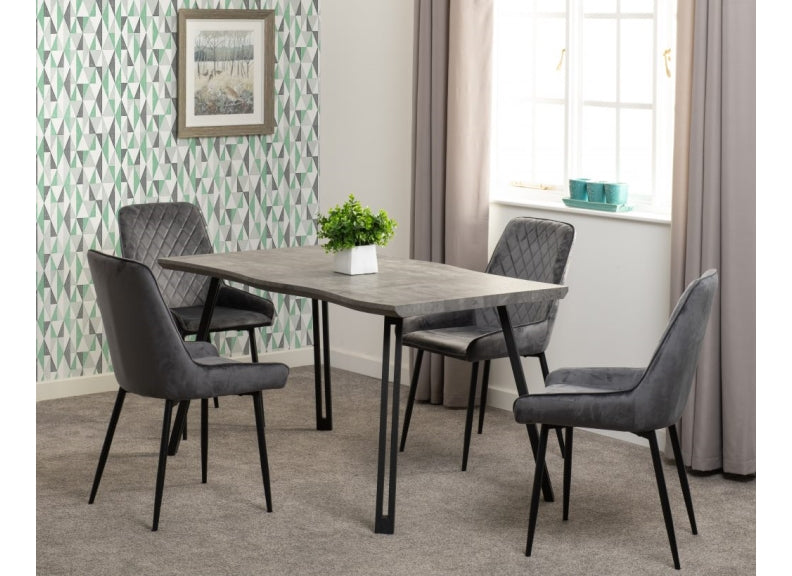 The Quebec Dining Table is available to order with a concrete effect finish, oak effect finish or black wood grain finish.