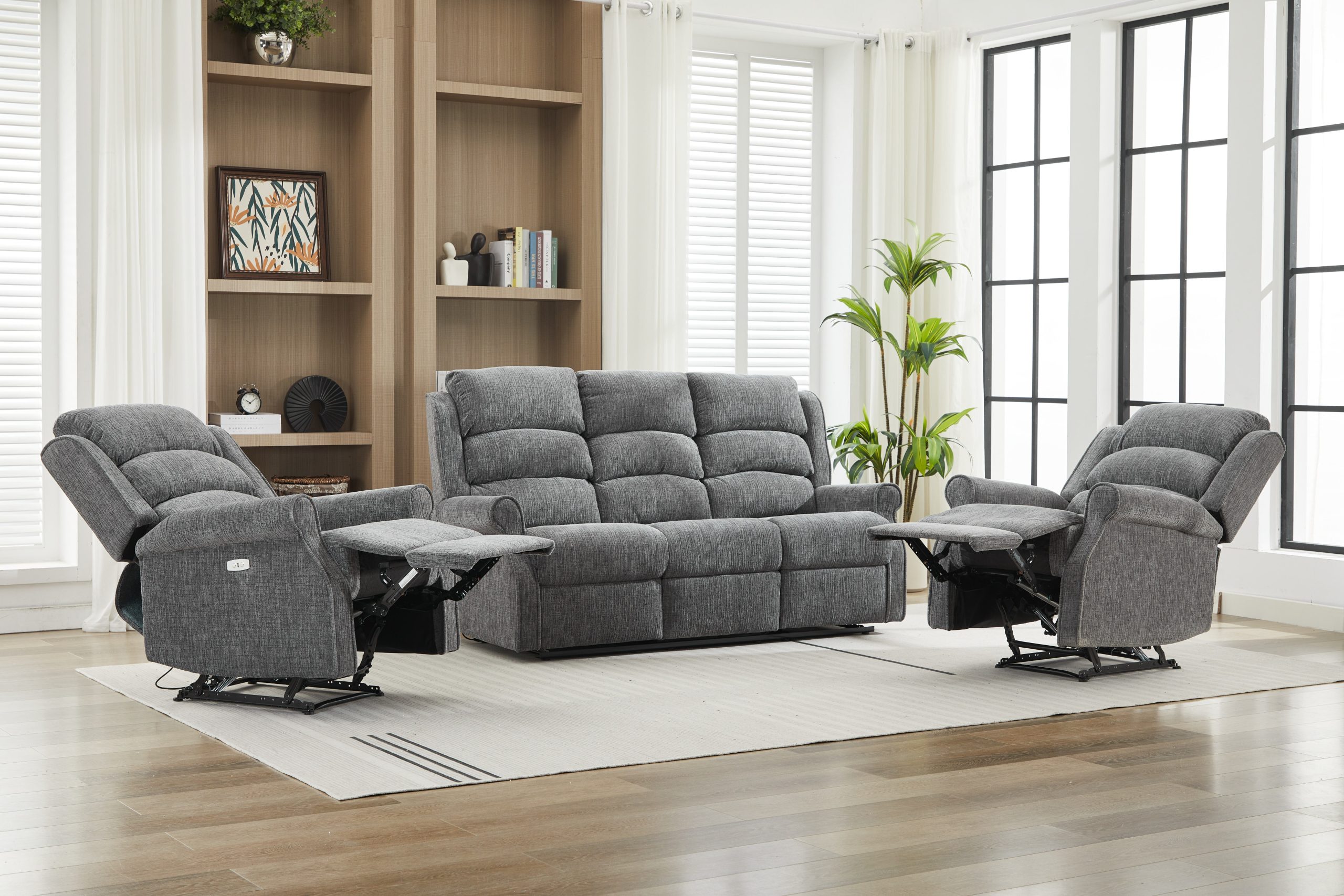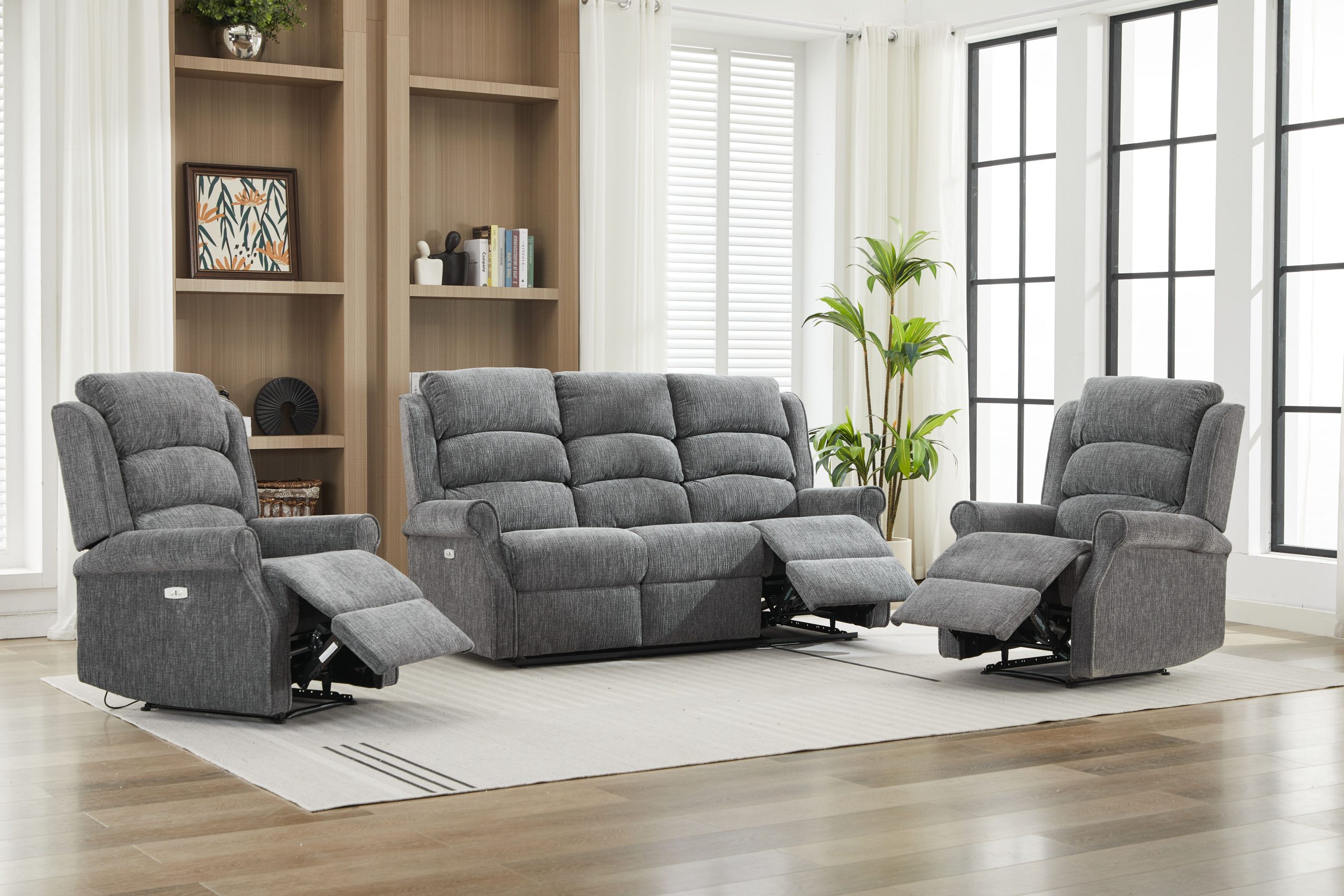 Discover the perfect blend of tradition and innovation with The Regency reclining suite. Crafted with classic rolled arms, high supportive headrests, and plush pocket-sprung seating, The Regency offers indulgent comfort wrapped in a sophisticated silhouette. Upholstered in two elegant fabric options—Anthracite for bold modernity and Rabbit for soft, contemporary warmth—this suite is designed to complement any home.