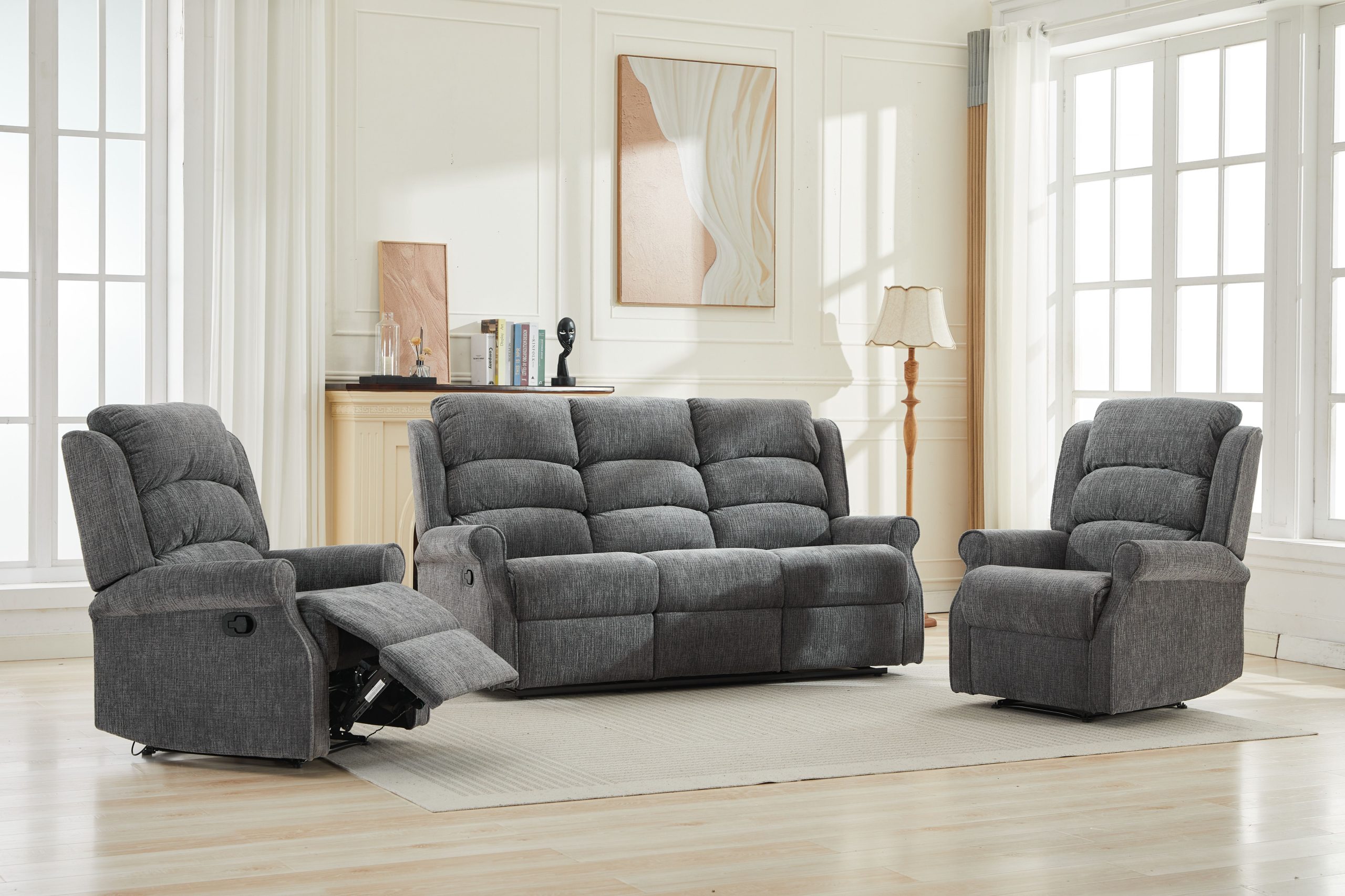 Discover the perfect blend of tradition and innovation with The Regency reclining suite. Crafted with classic rolled arms, high supportive headrests, and plush pocket-sprung seating, The Regency offers indulgent comfort wrapped in a sophisticated silhouette. Upholstered in two elegant fabric options—Anthracite for bold modernity and Rabbit for soft, contemporary warmth—this suite is designed to complement any home.