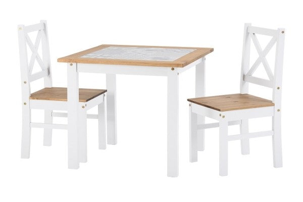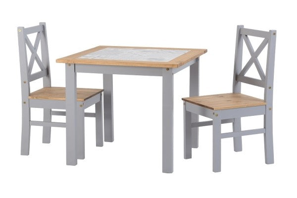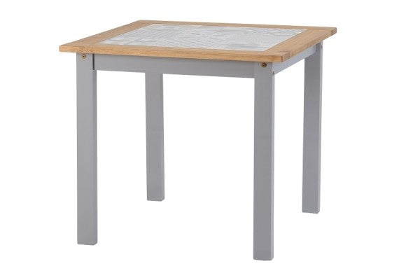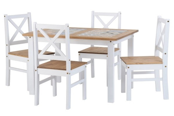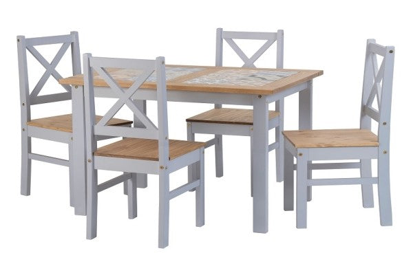 Salvador Tile Top Dining Sets an unusual styled dining set with grey or white wooden frames & ceramic tile tops. This dining set is available to order in two tone grey or two tone white colours AND in small(with two chairs) or large(with four chairs).