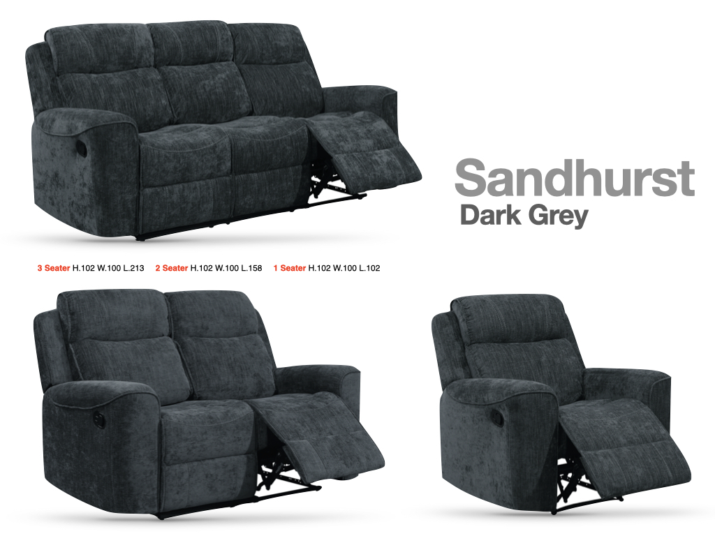 Experience comfort and style with our Stylish Sandhurst Reclining Suite. Available in Dark Grey and Light Grey on premium fabric. Designed for modern living, this recliner combines sleek aesthetics with practical functionality. The pocket-sprung seat offers superior support and cushioning, ensuring a comfortable seating experience. Its modern design seamlessly blends into any contemporary space, while the easy-to-use manual reclining function lets you relax at your own pace. Perfect for adding both style and comfort to your home.