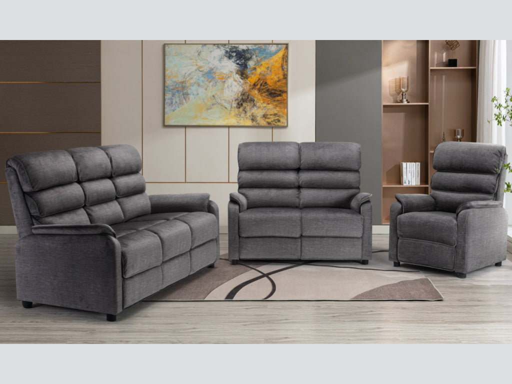 Enhance your home with the Savoy 3 Seater Fixed Sofa in Grey, featuring luxurious fabric, high headrests, and a stable design. Perfect for stylish and comfortable living.