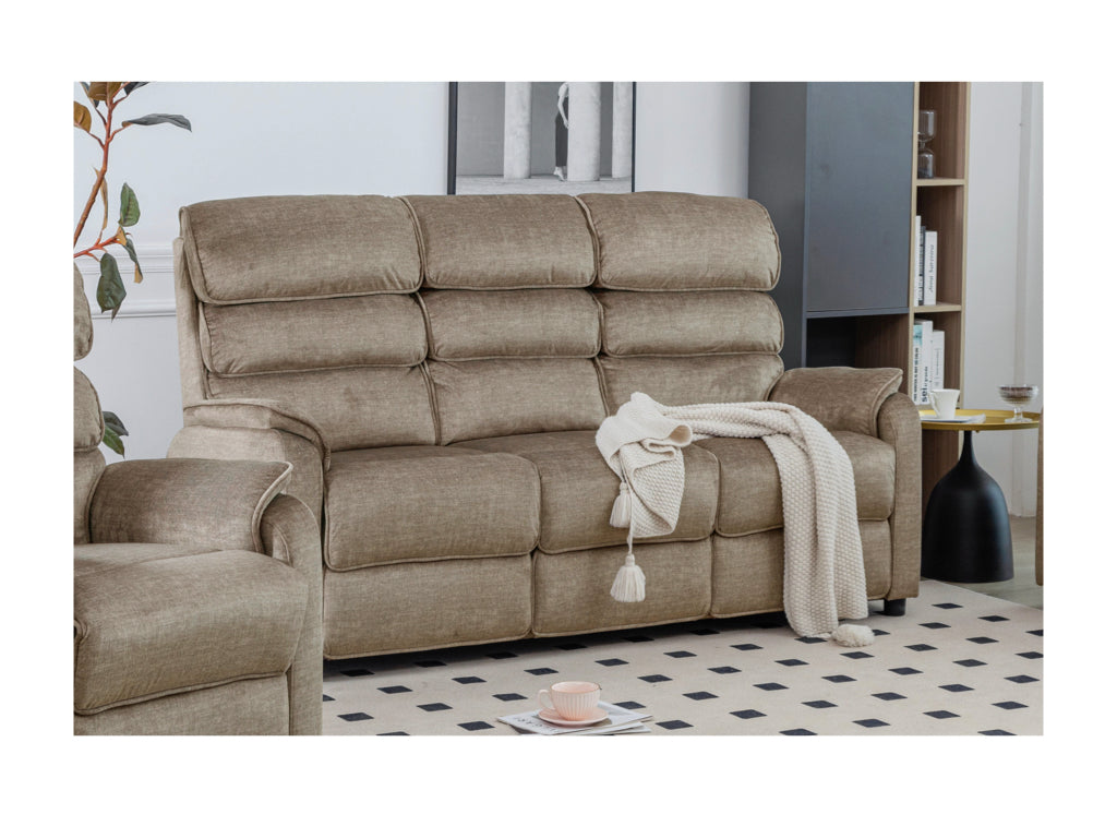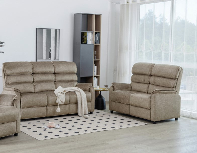 Elevate your living space with the Savoy 3+2 Seater Suite Fixed in Taupe, crafted with luxurious fabric and supportive high headrests. Ideal for comfortable, stylish family living.