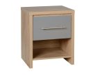 Seville White One Drawer Bedside in a two colour finish and composed of MDF board with coloured gloss finished veneers, metal drawer runners & handles.