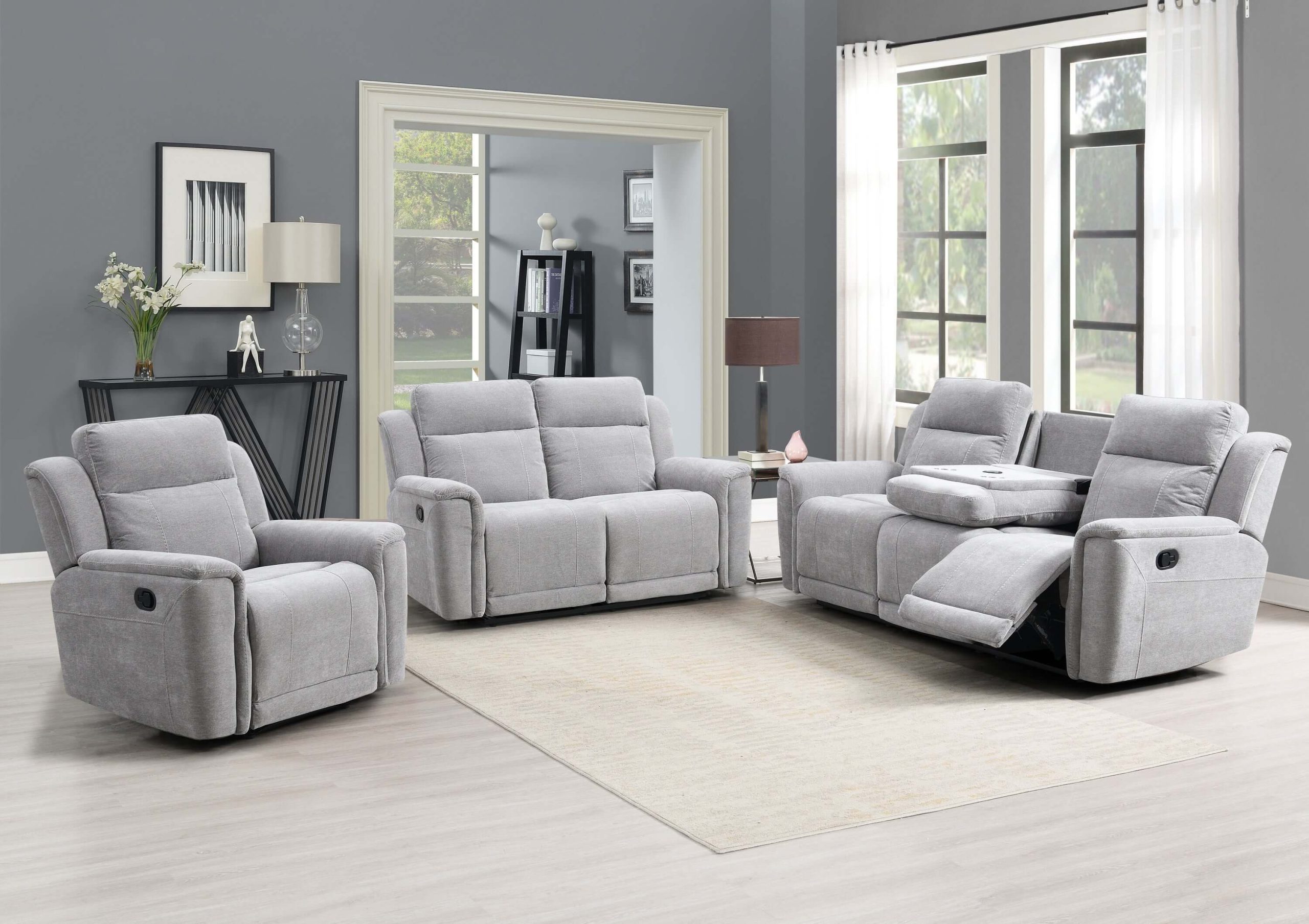 Somerton Manual Reclining 3 Seater Sofa – Light Grey Fabric