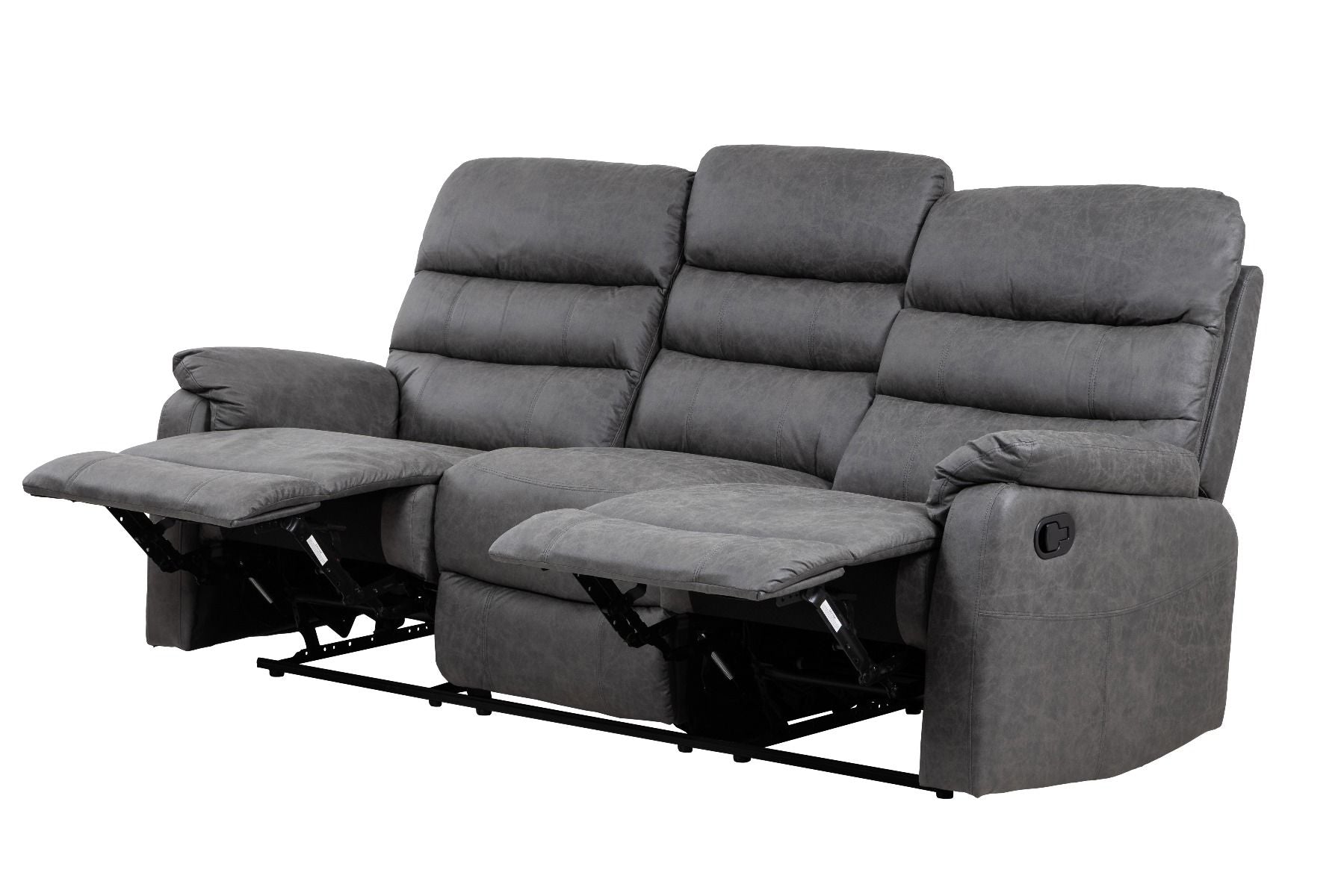 Bergamo Leather 3 Seater Recliner Sofa-Dark Grey