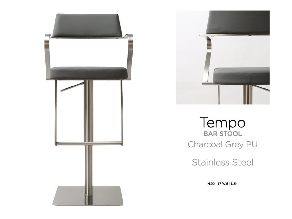 Tempo Barstool Stainless Steel Charcoal Grey PU