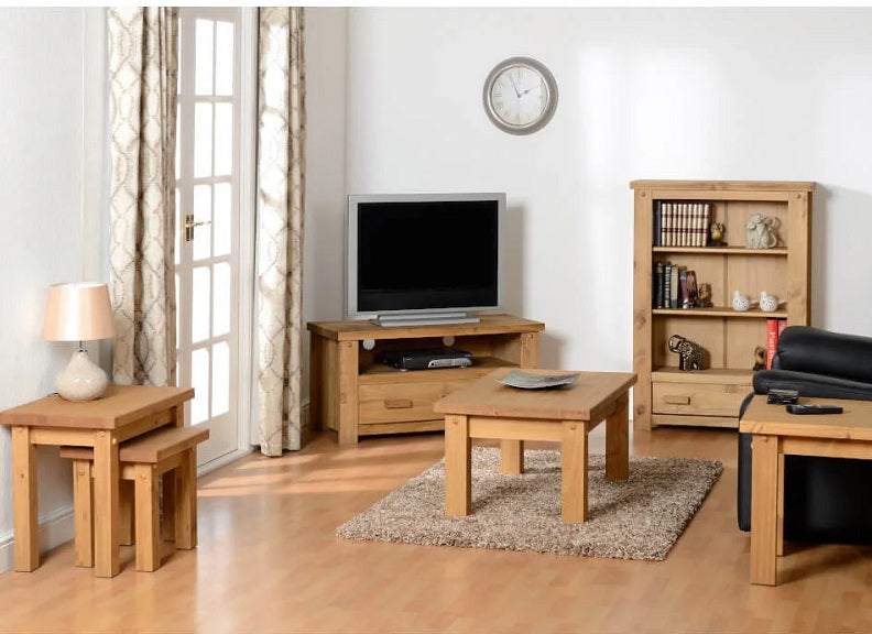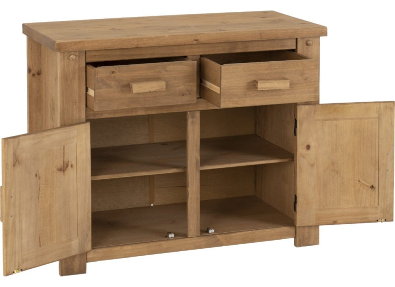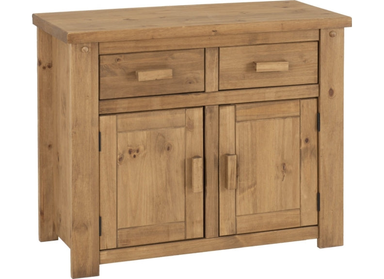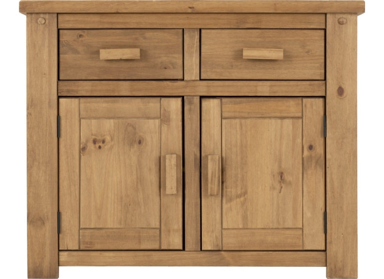 TORTILLA PINE TWO DOOR TWO DRAWER SMALL SIDEBOARD-with distressed waxed pine frame in a chunky traditional Mexican style and like our Corona Collections at a value for money price.