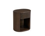 Sleek and contemporary, the Tucson End Table features a rounded rectangle shape in Dark Elm veneer on MDF. It has a single drawer for essentials and a framed lower compartment for stylish, open storage.