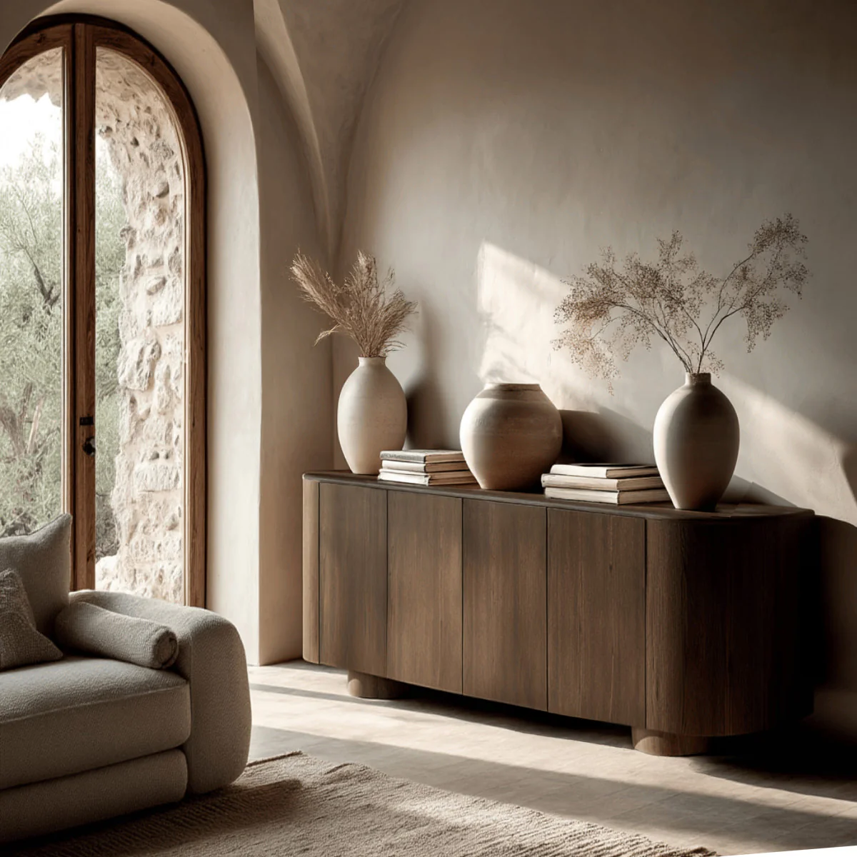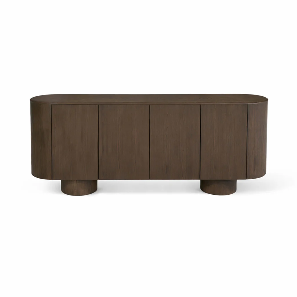 The Tucson 4 Door Sideboard combines sleek modern lines with practical storage. Finished in Dark Elm veneer, it features four doors for ample concealed storage, keeping your space tidy and stylish.